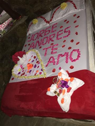 ♥Decoración especial con petalos de rosa y mensaje escogido por el cliente.