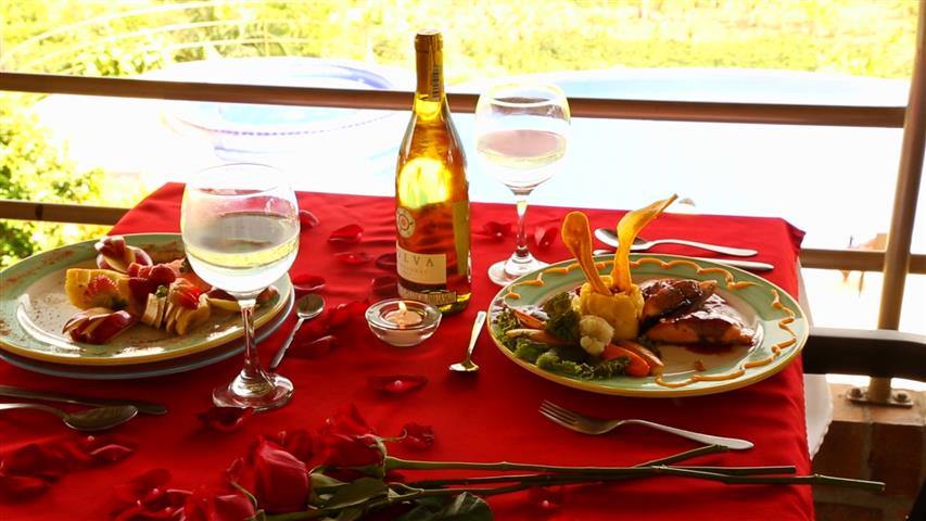 ♥ Cena en el balcón de la habitación con vino ( se envian las opciones de menús y los huespedes escogen)