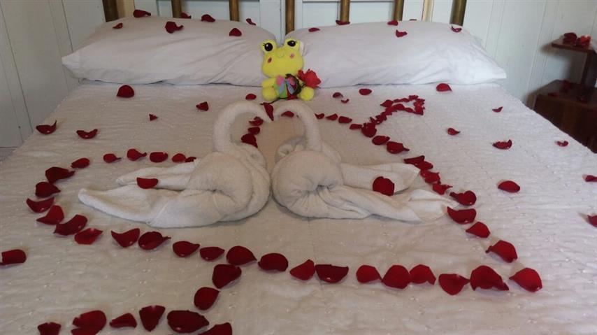 ♥ Decoración con pétalos de rosa.