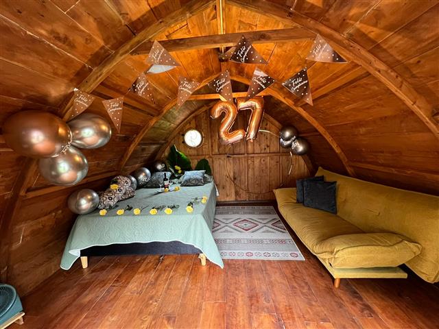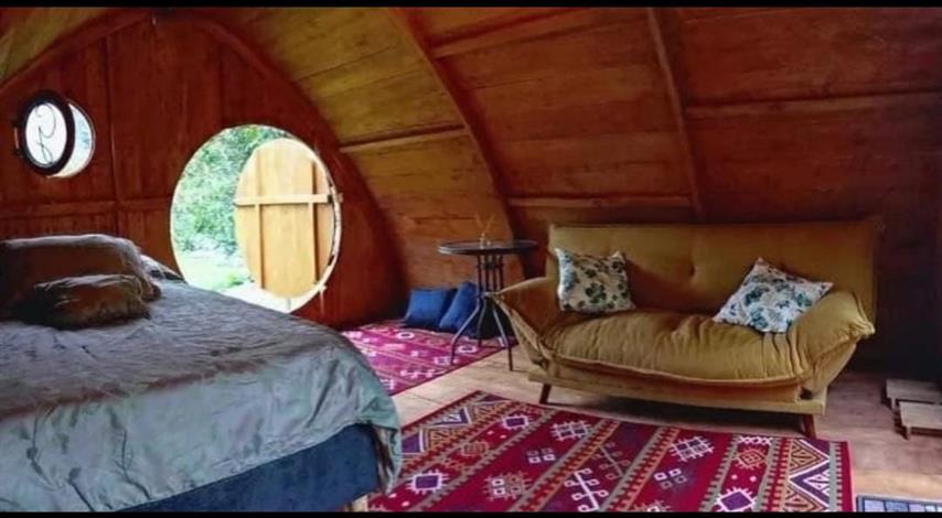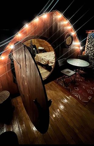 Glamping inspirado en el señor de los anillos, 100% madera de pino, su bioclimática está diseñada para que de día se caliente y de noche no tengas frío.